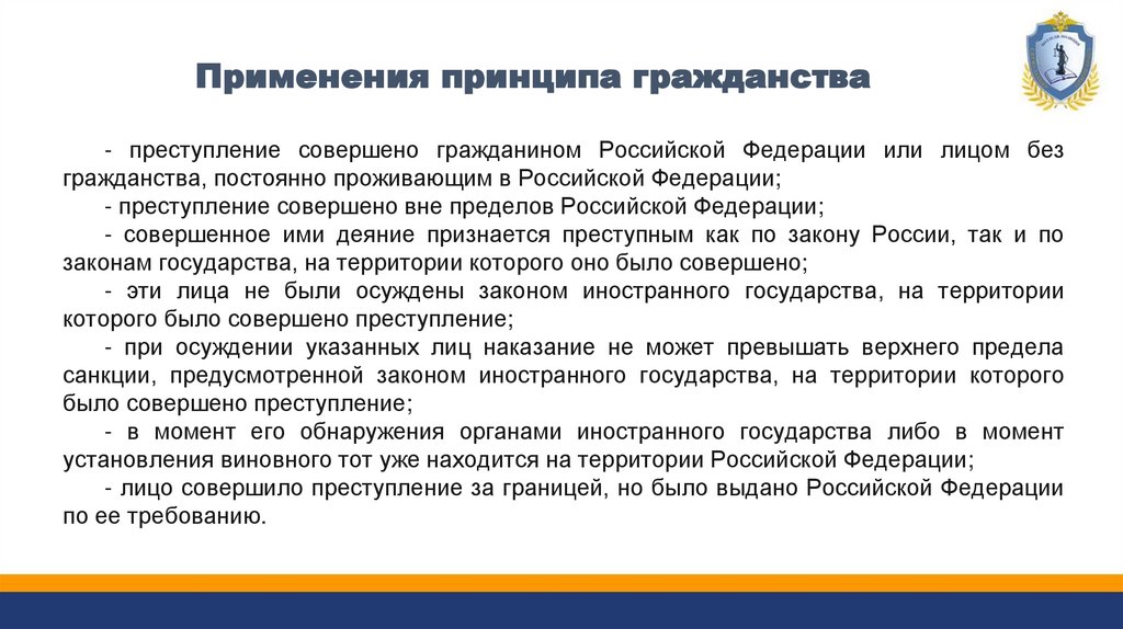 преступление; принцип гражданства выражается в том, что граждане Российской