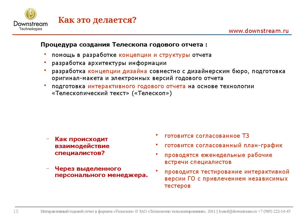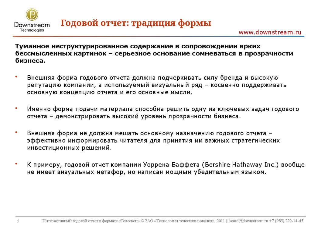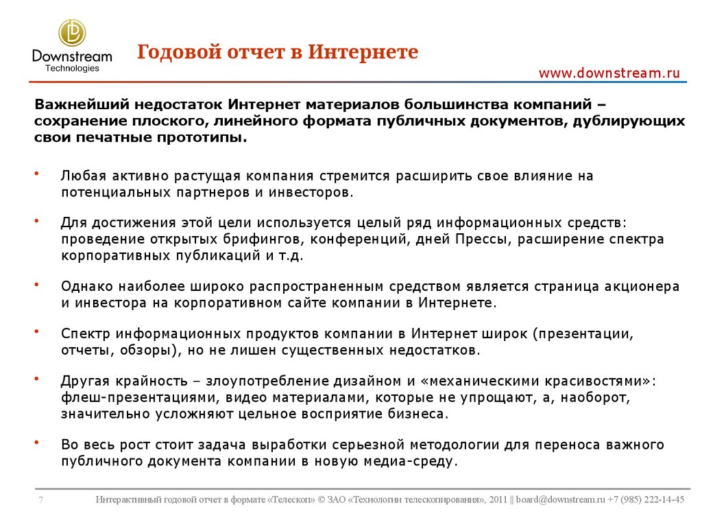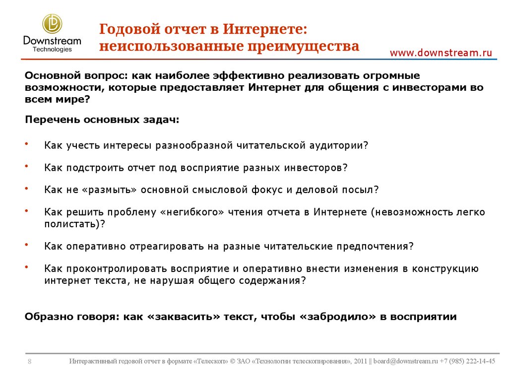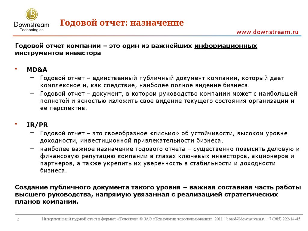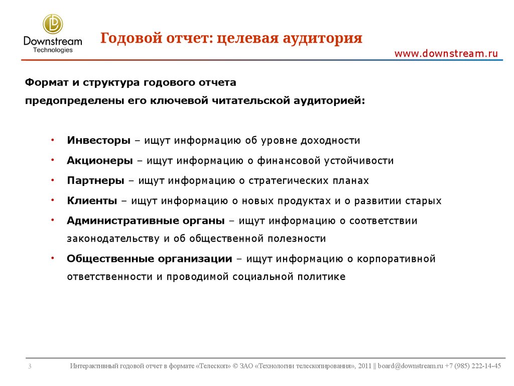 Годовой отчет: целевая аудиторияwww.downstream.ru