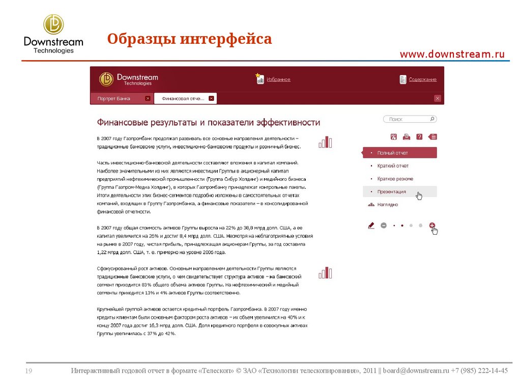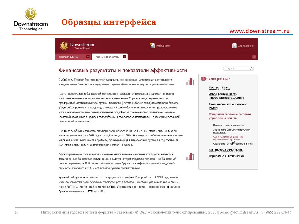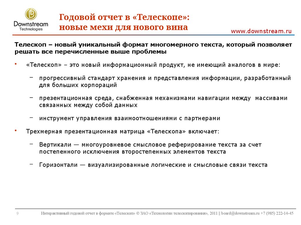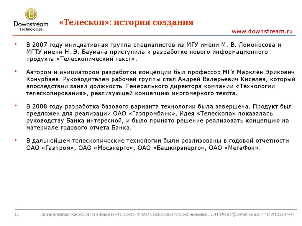 Интерактивный годовой отчет в формате «Телескоп» © ЗАО «Технологии телескопирования», 2011 || board@downstream.ru +7 (985) 222-14-45