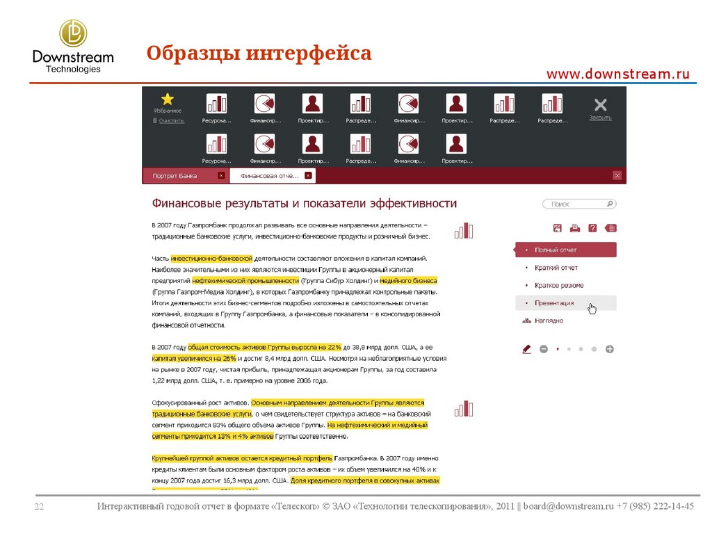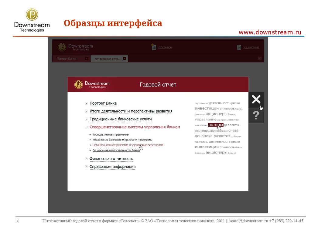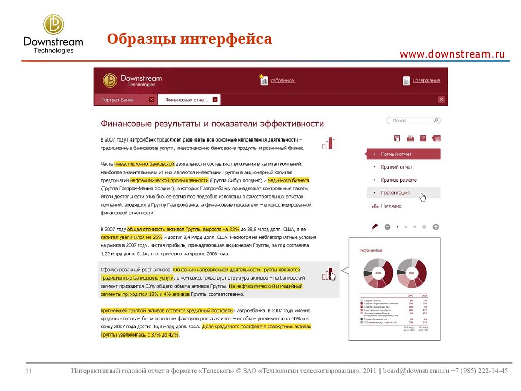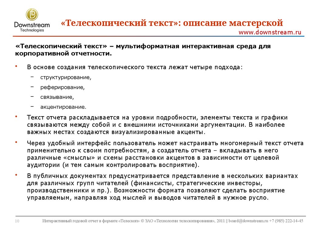Интерактивный годовой отчет в формате «Телескоп» © ЗАО «Технологии телескопирования», 2011 || board@downstream.ru +7 (985) 222-14-45