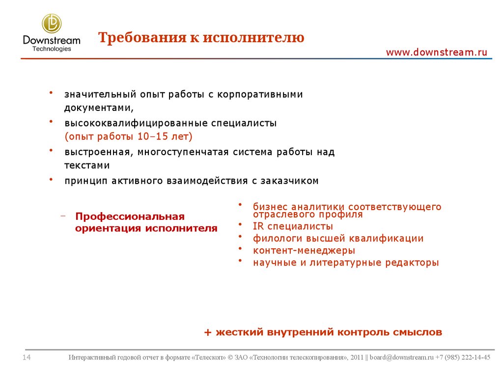 Требования к исполнителюзначительный опыт работы с корпоративными