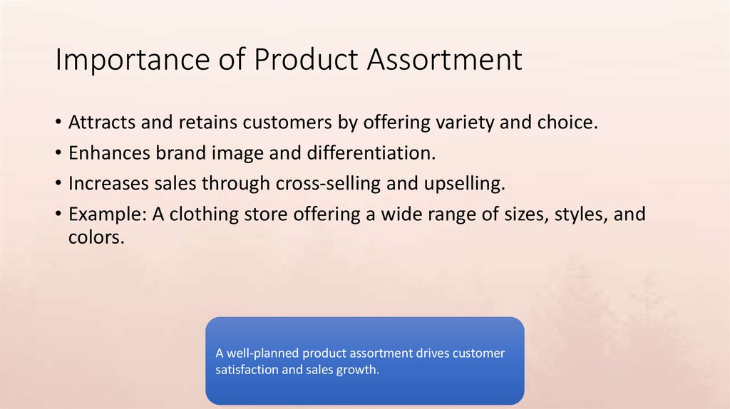 Importance of Product Assortment• Attracts and retains customers by offering variety and choice.