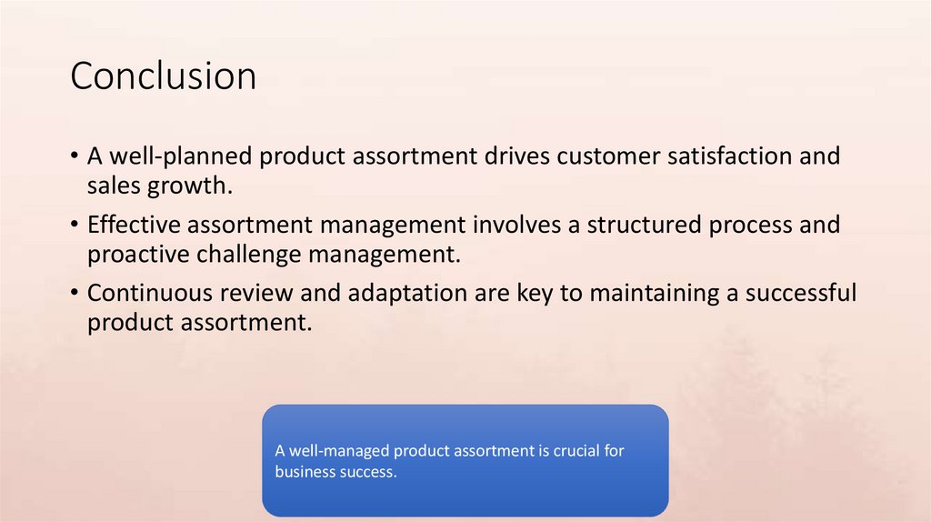 Conclusion• A well-planned product assortment drives customer satisfaction and