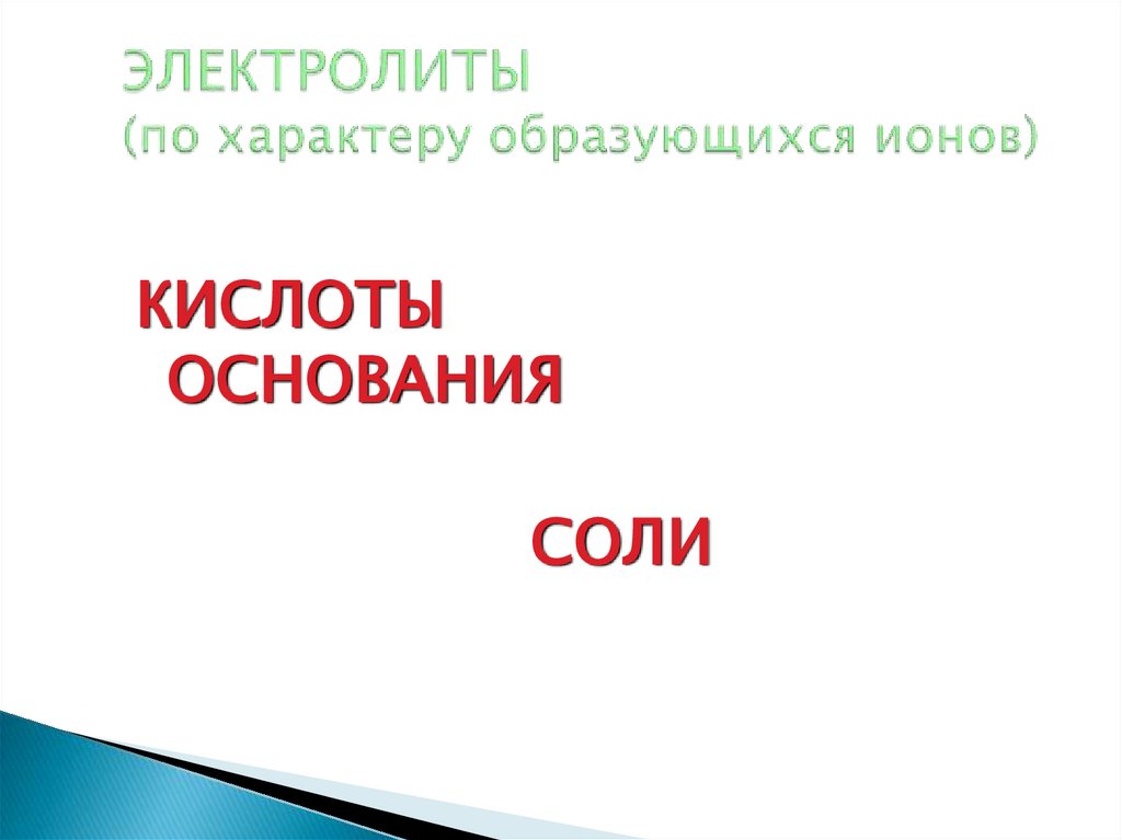 27. ЭЛЕКТРОЛИТЫ (по характеру образующихся ионов)