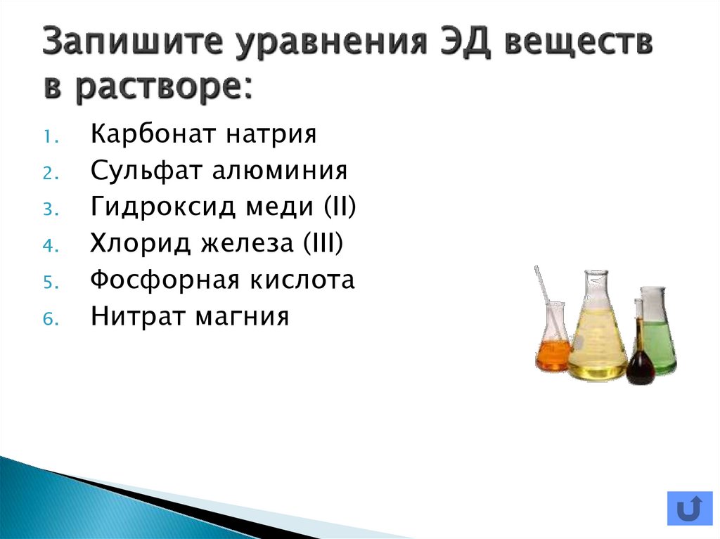 33. Запишите уравнения ЭД веществ в растворе: