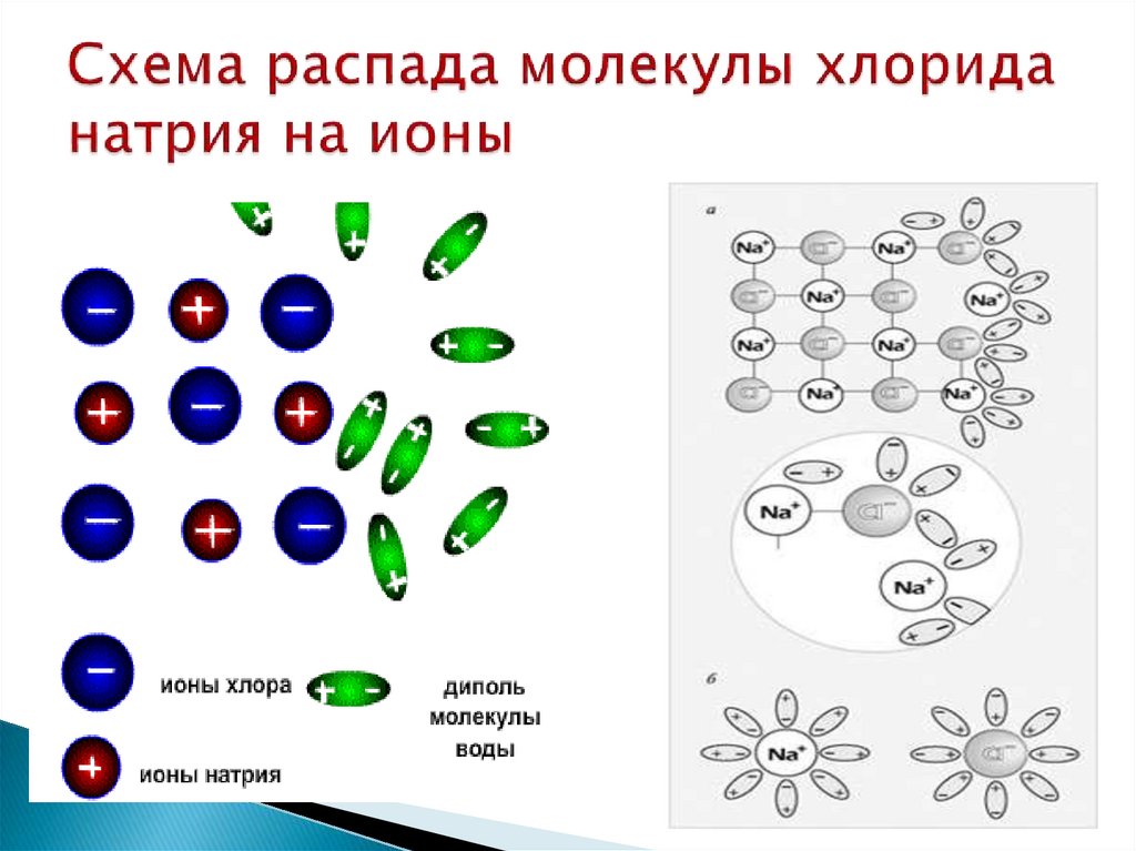 9. Схема распада молекулы хлорида натрия на ионы