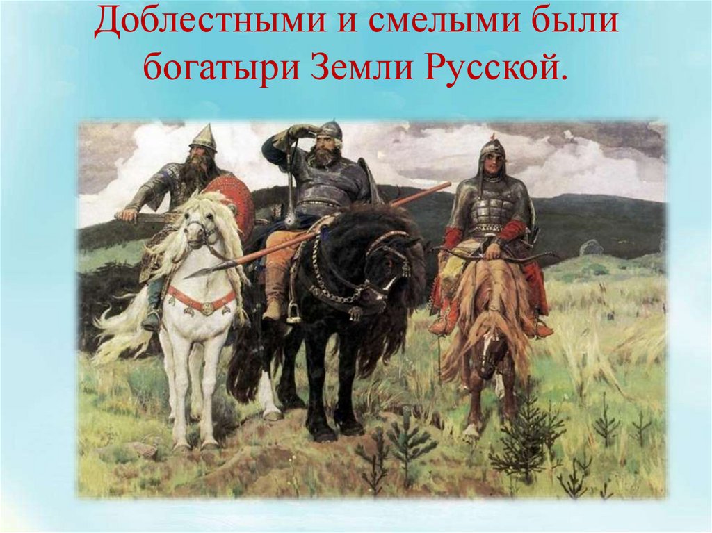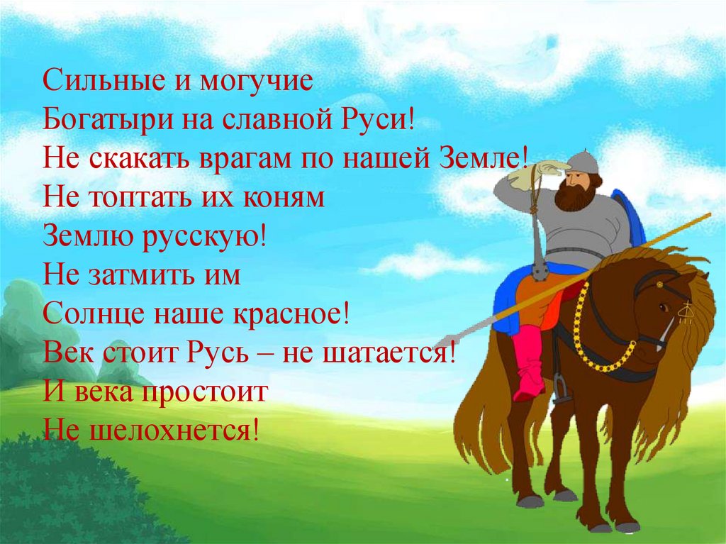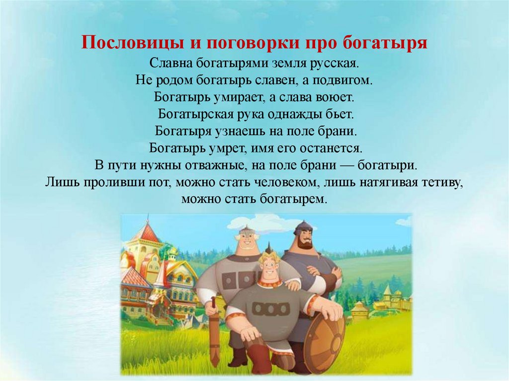 Пословицы и поговорки про богатыряСлавна богатырями земля русская.