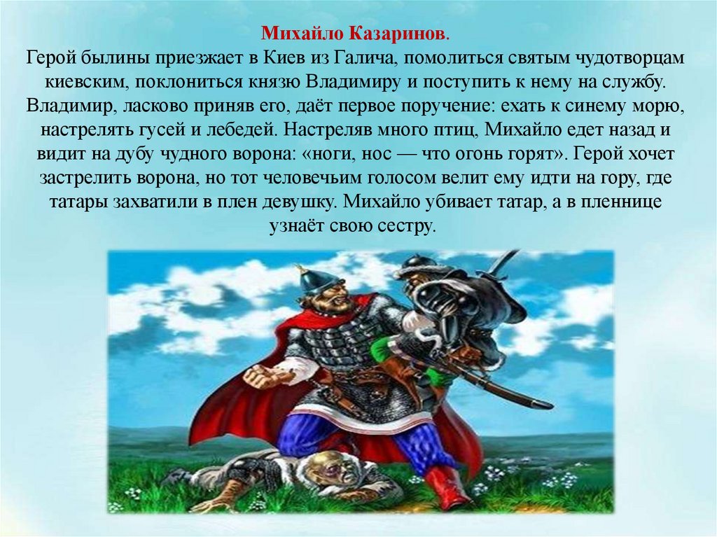 Михайло Казаринов.Герой былины приезжает в Киев из Галича, помолиться святым чудотворцам