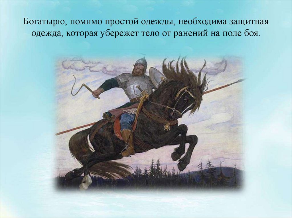 Богатырю, помимо простой одежды, необходима защитнаяодежда, которая убережет тело от ранений на поле боя.