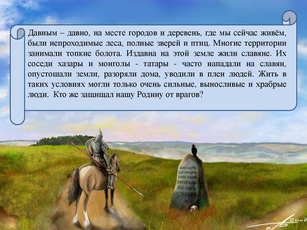 Давным – давно, на месте городов и деревень, где мы сейчас живём,были непроходимые леса, полные зверей и птиц. Многие территории