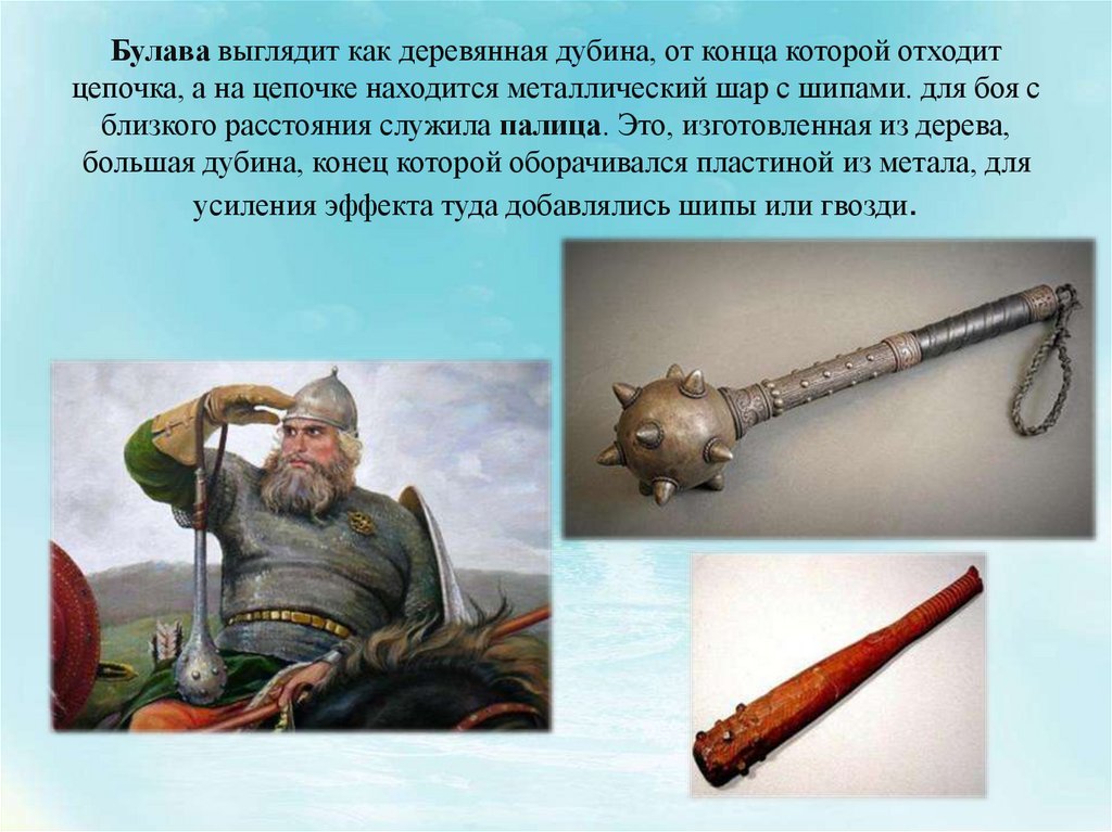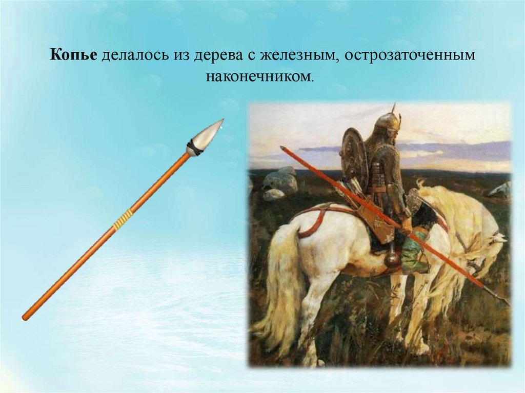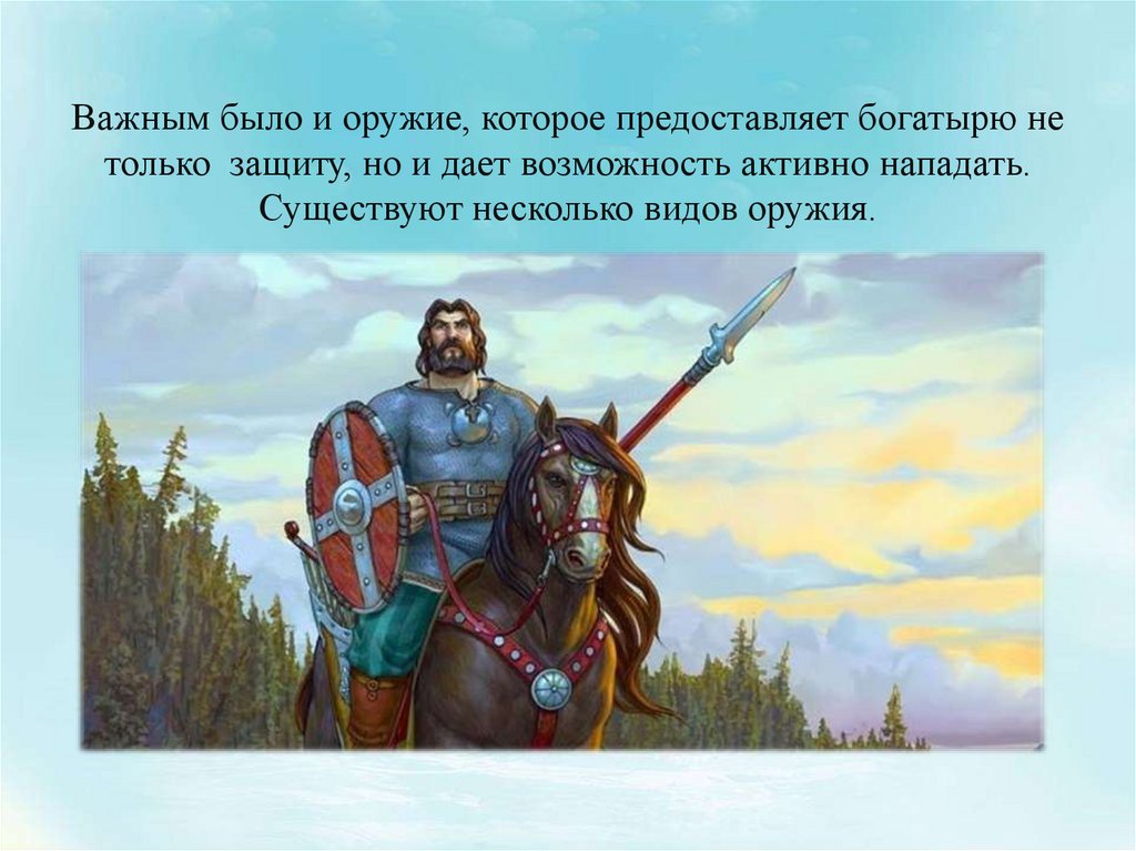 Важным было и оружие, которое предоставляет богатырю нетолько защиту, но и дает возможность активно нападать.
