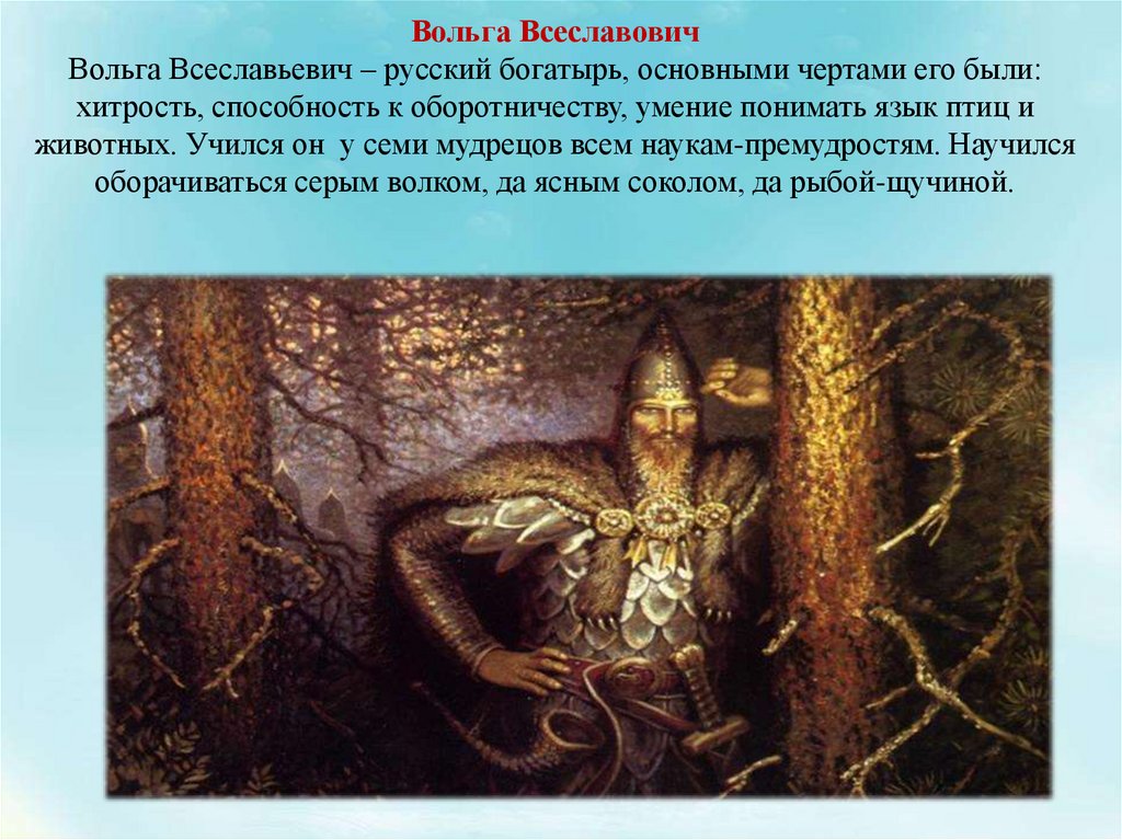 Вольга ВсеславовичВольга Всеславьевич – русский богатырь, основными чертами его были: