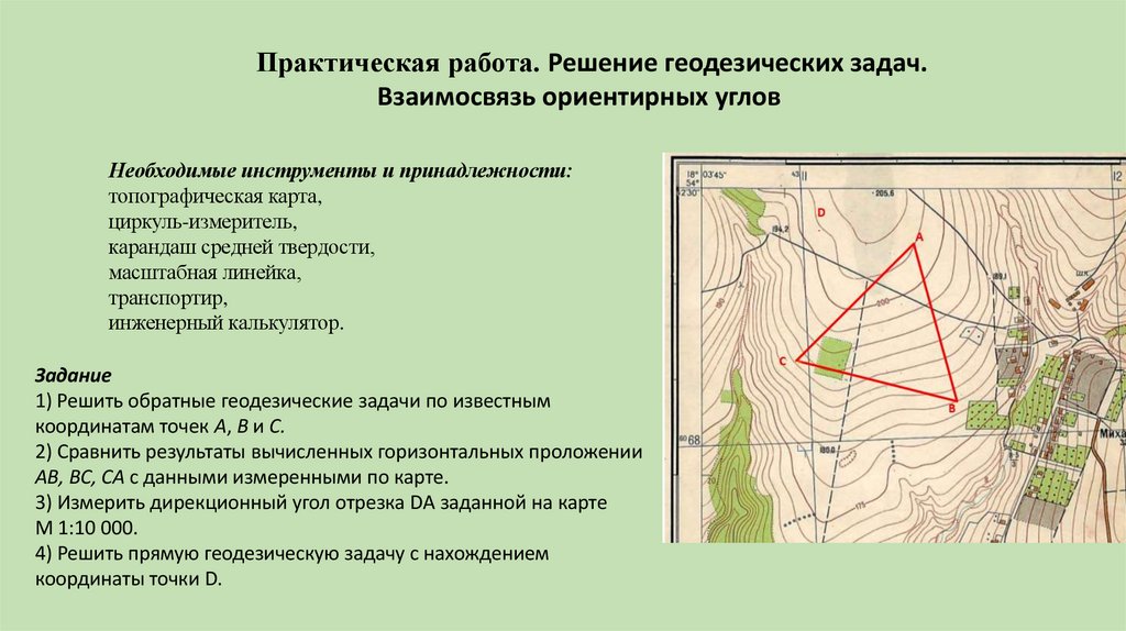 Практическая работа. Решение геодезических задач.Взаимосвязь ориентирных углов