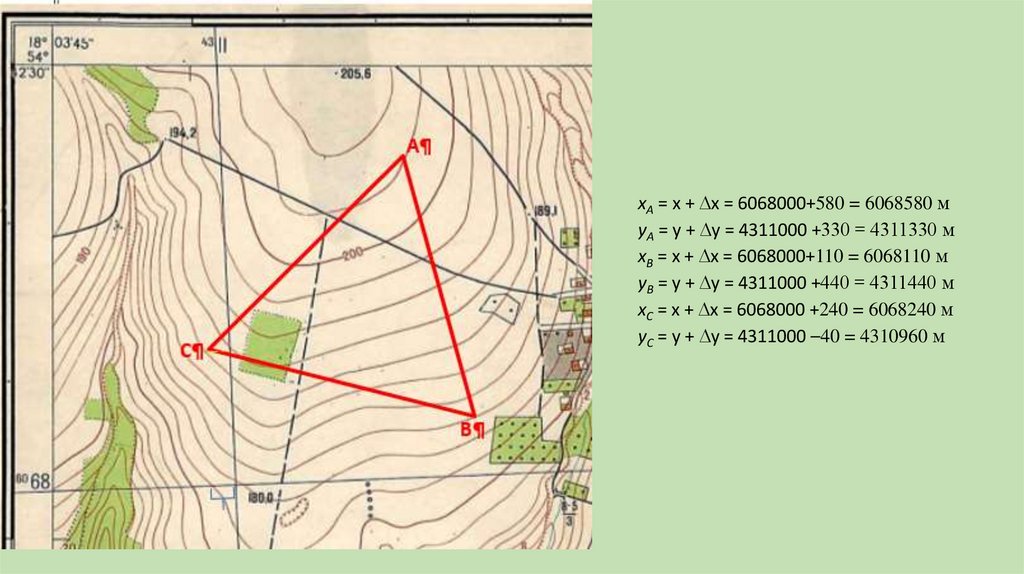 хA = х + х = 6068000+580 = 6068580 муA = у + у = 4311000 +330 = 4311330 м