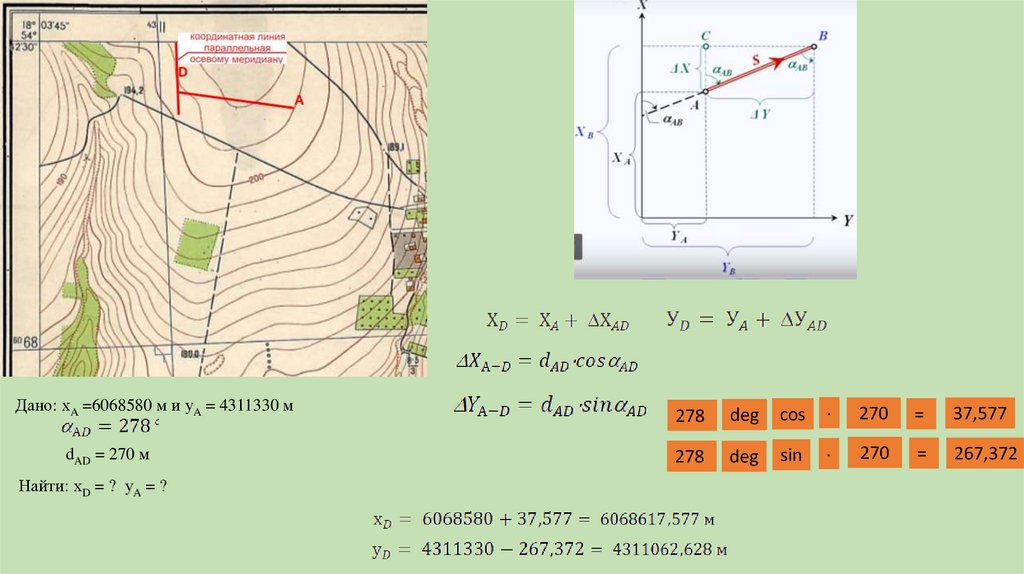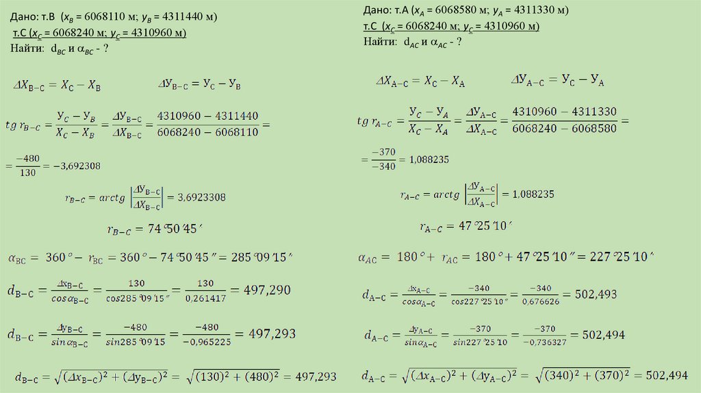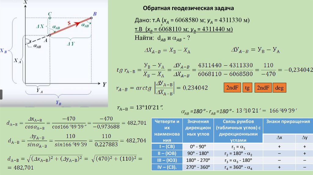 Обратная геодезическая задачаДано: т.А (хA = 6068580 м; уA = 4311330 м)