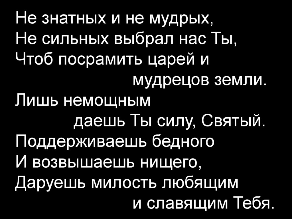 Не знатных и не мудрых,Не сильных выбрал нас Ты,