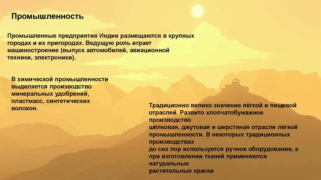 ПромышленностьПромышленные предприятия Индии размещаются в крупных