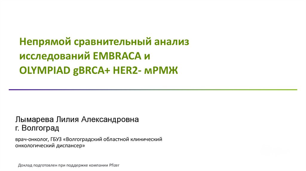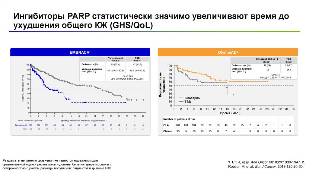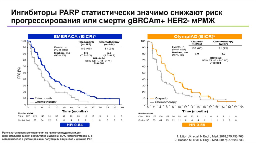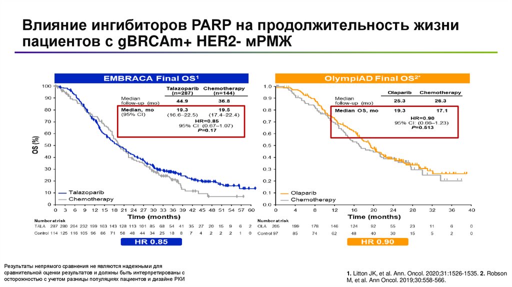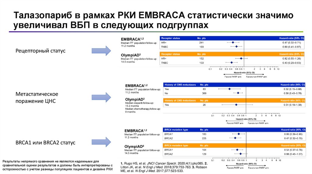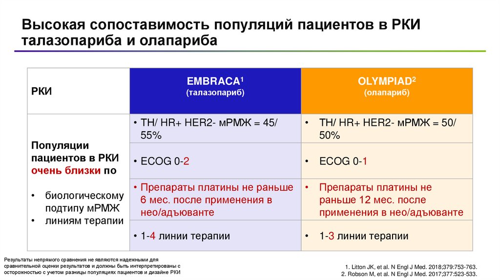 Непрямой сравнительный анализ исследований EMBRACA и OLYMPIAD gBRCA+ HER2- мРМЖ