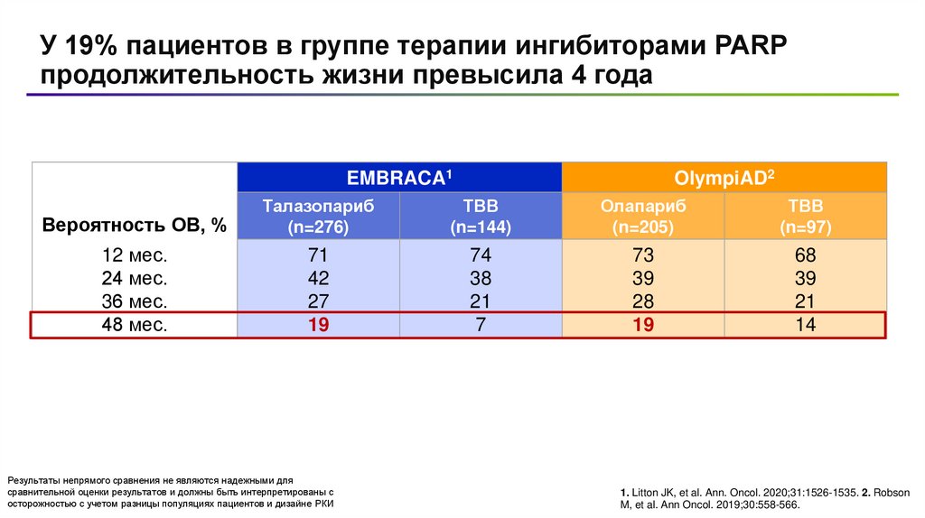 Непрямой сравнительный анализисследований EMBRACA и