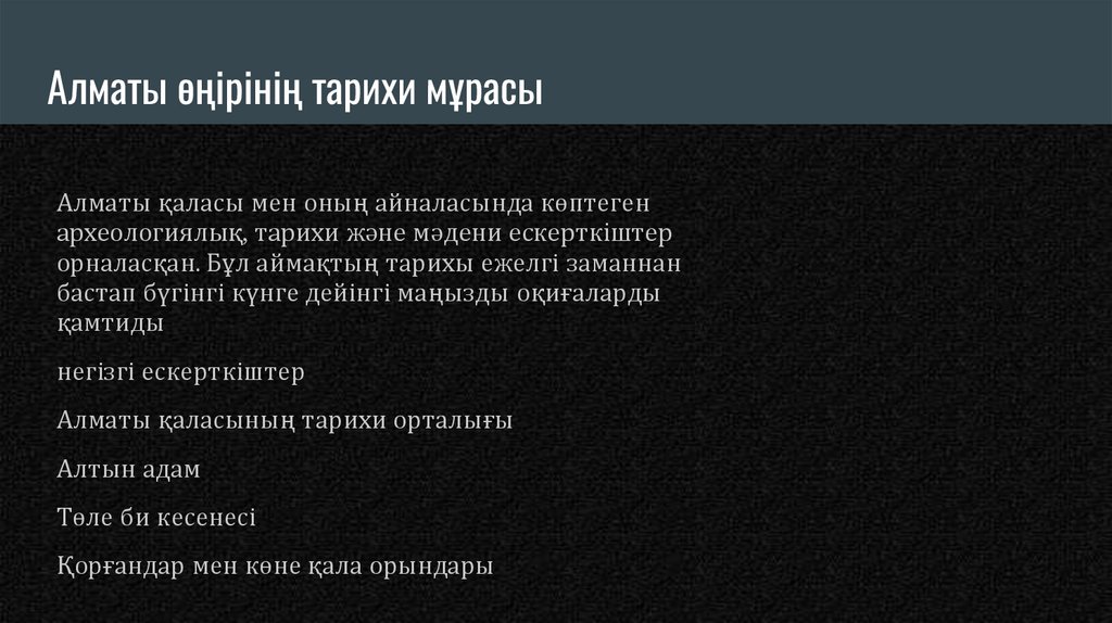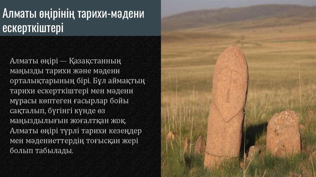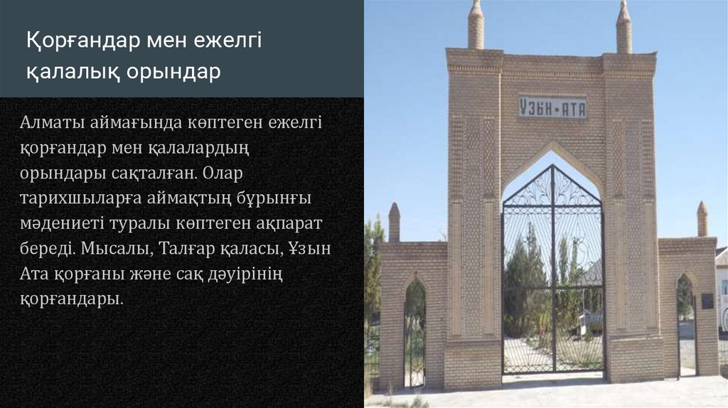 Алматы өңірінің тарихи мұрасыАлматы қаласы мен оның айналасында көптеген