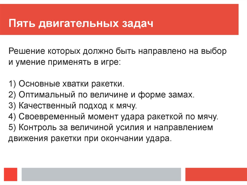 Пять двигательных задачРешение которых должно быть направлено на выбор