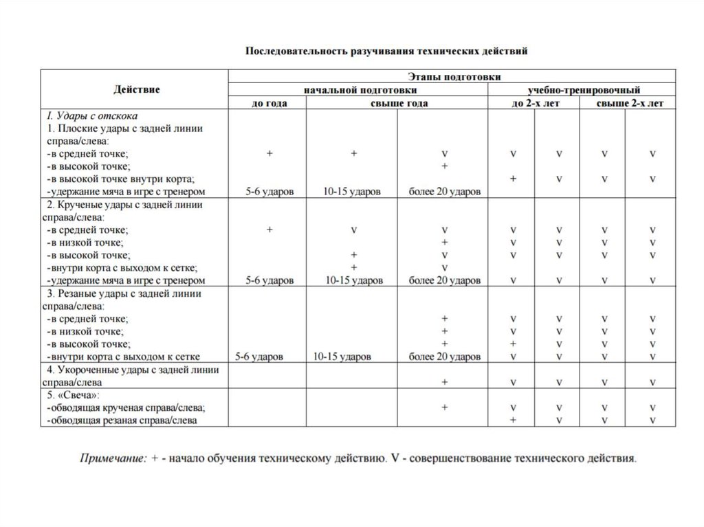 Удары без вращения и с вращением мячаУдары, после которых мячи направляются на сторону соперника