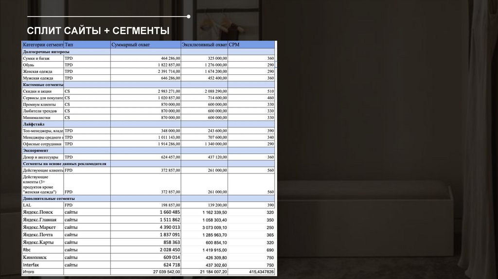 • Рекомендации по соотношению сайтов и сегментов в сплите