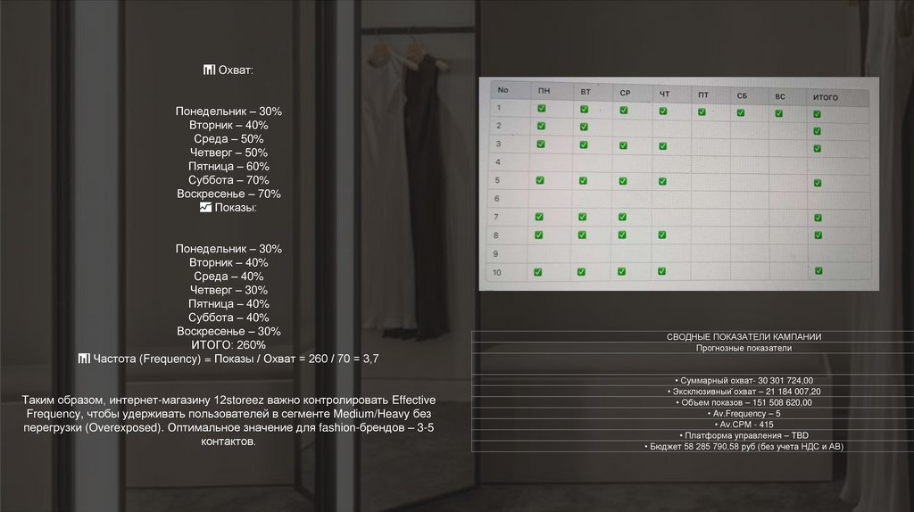 Целевая аудитория• Все, 25-54, города 700+, доход средний и высокий, релевантные