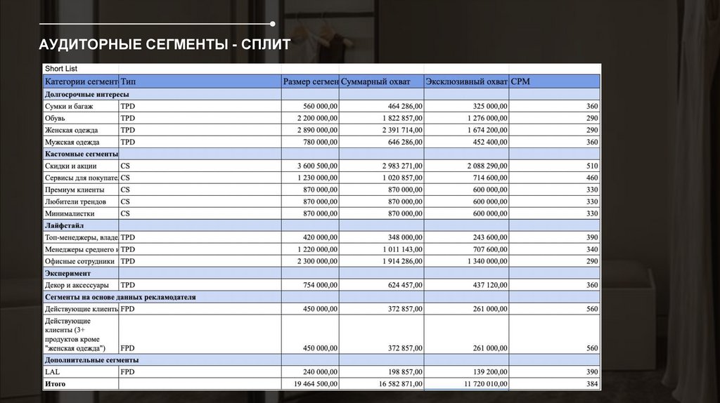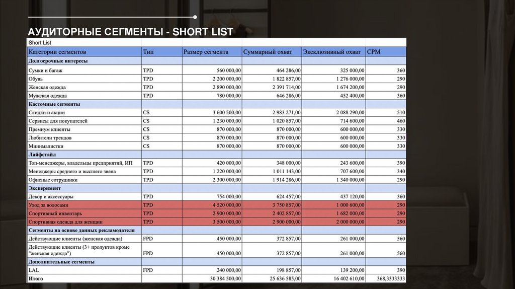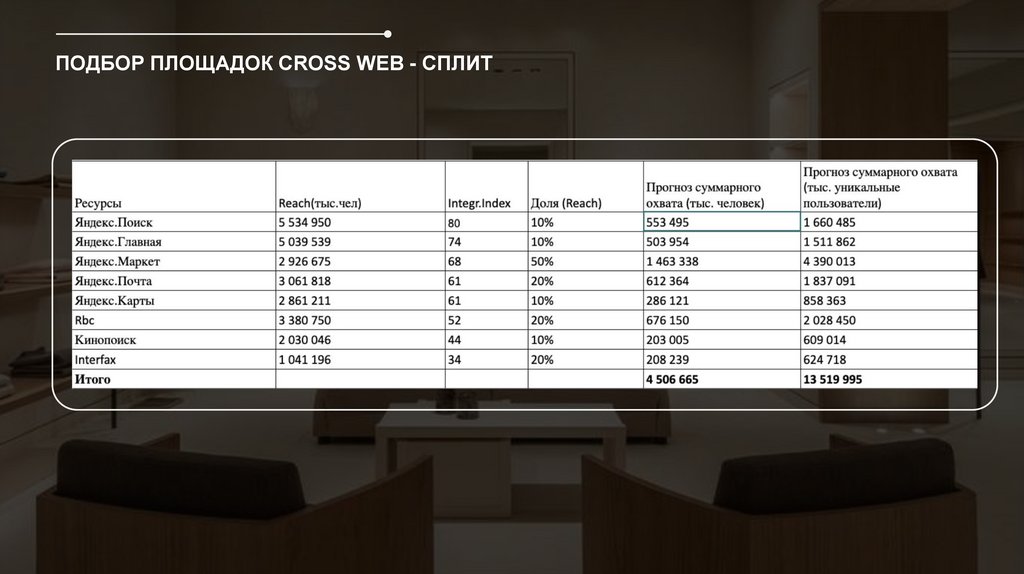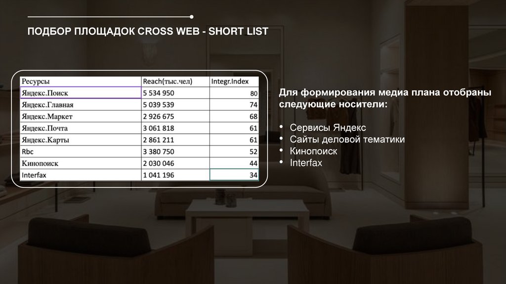 ПОДБОР ПЛОЩАДОК CROSS WEB - SHORT LISTДля формирования медиа плана отобраны