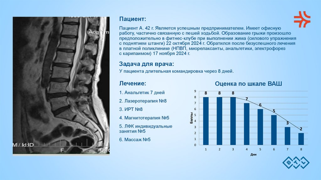 миорелаксантов, хондропротекторов, массажа и физиолечения. Работа