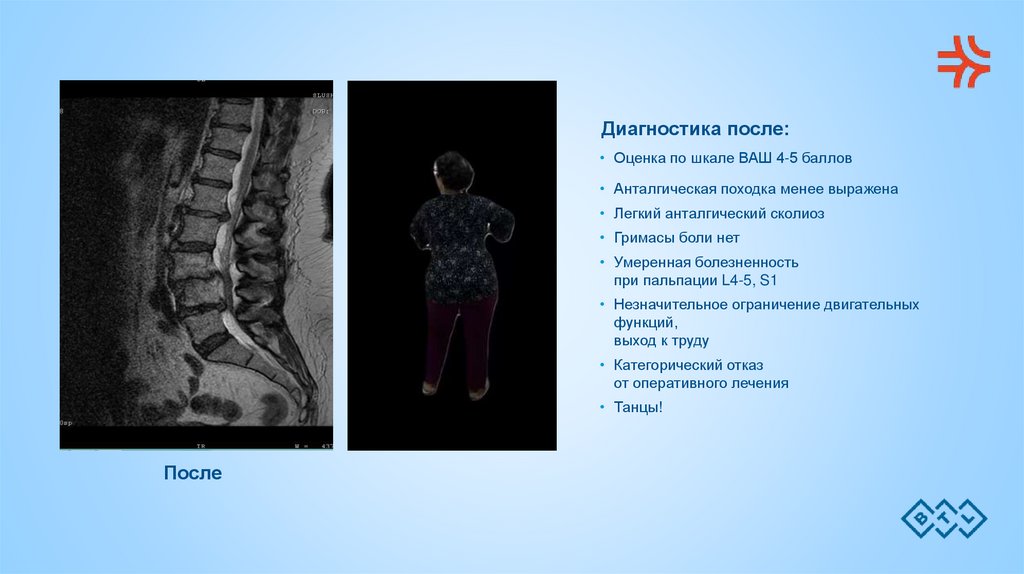 Диагностика после:• Оценка по шкале ВАШ 4-5 баллов