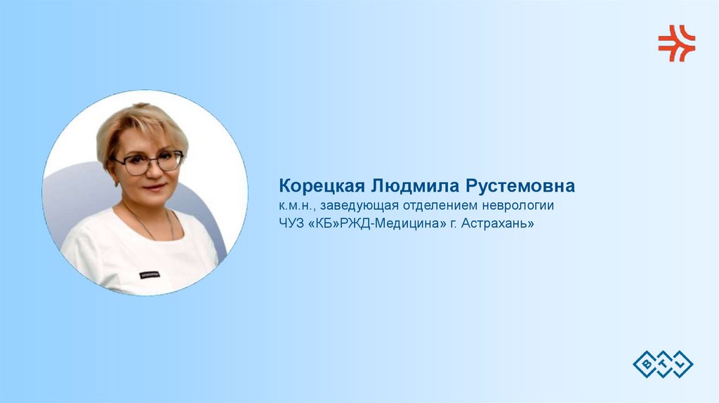 Корецкая Людмила Рустемовнак.м.н., заведующая отделением неврологии