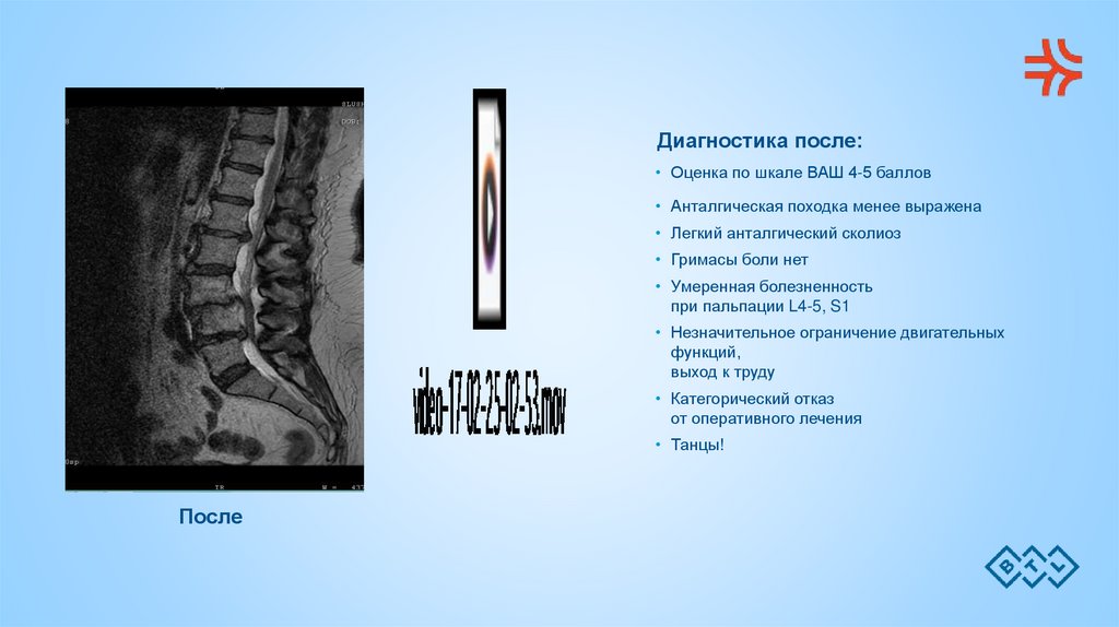 Диагностика после:• Оценка по шкале ВАШ 4-5 баллов
