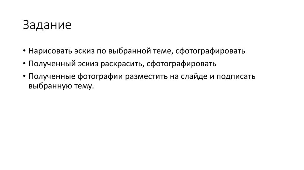 Задание• Нарисовать эскиз по выбранной теме, сфотографировать