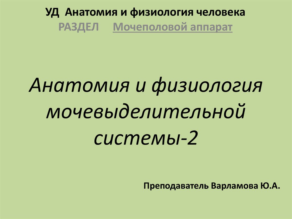 УД Анатомия и физиология человекаРАЗДЕЛ Мочеполовой аппарат