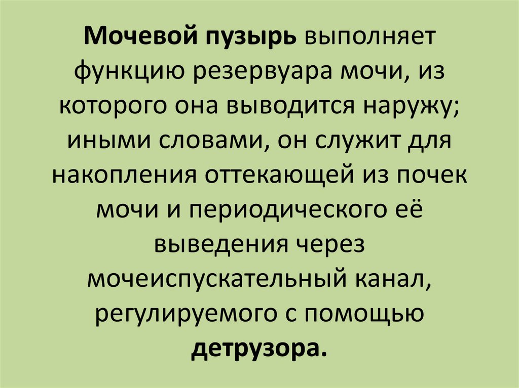 Мочевой пузырь выполняетфункцию резервуара мочи, из