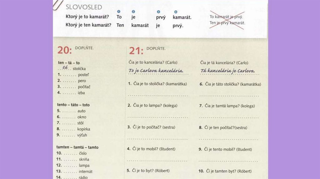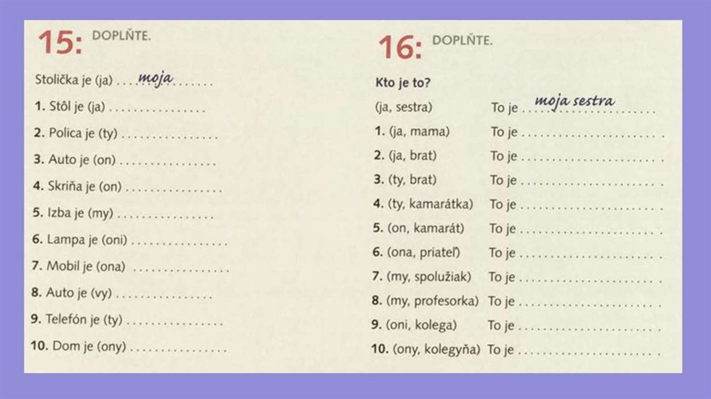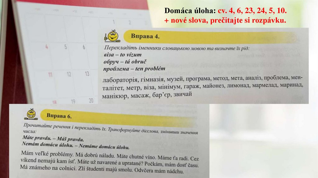 Domáca úloha: cv. 4, 6, 23, 24, 5, 10.+ nové slova, prečitajte si rozpávku.