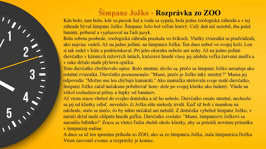 záhrade býval šimpanz Jožko. Šimpanz Jožo bol veľmi lenivý. Celý deň nič nerobil, iba jedol