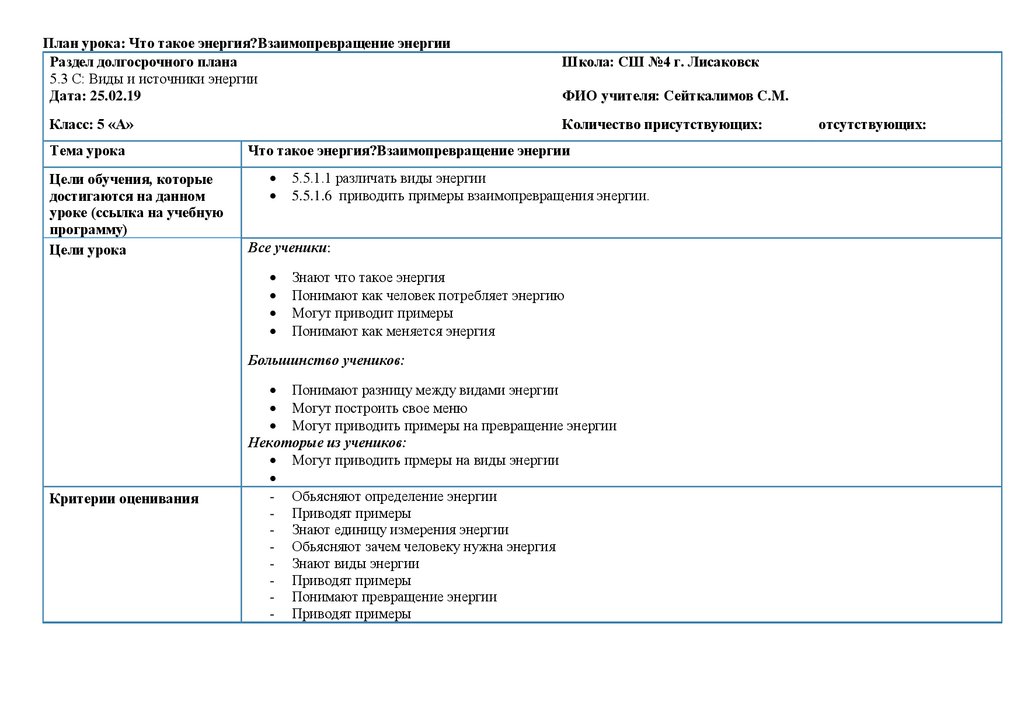 План урока: Что такое энергия?Взаимопревращение энергииРаздел долгосрочного плана