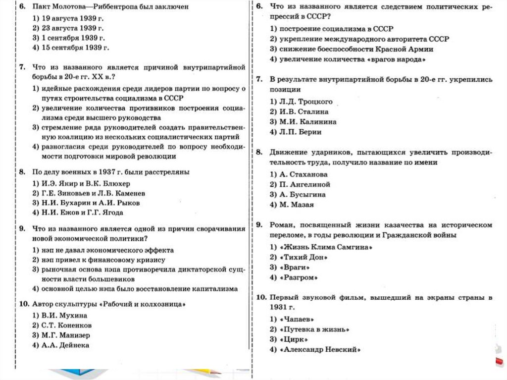 Обобщающее занятие по теме: "СССР на путях строительства нового общества"