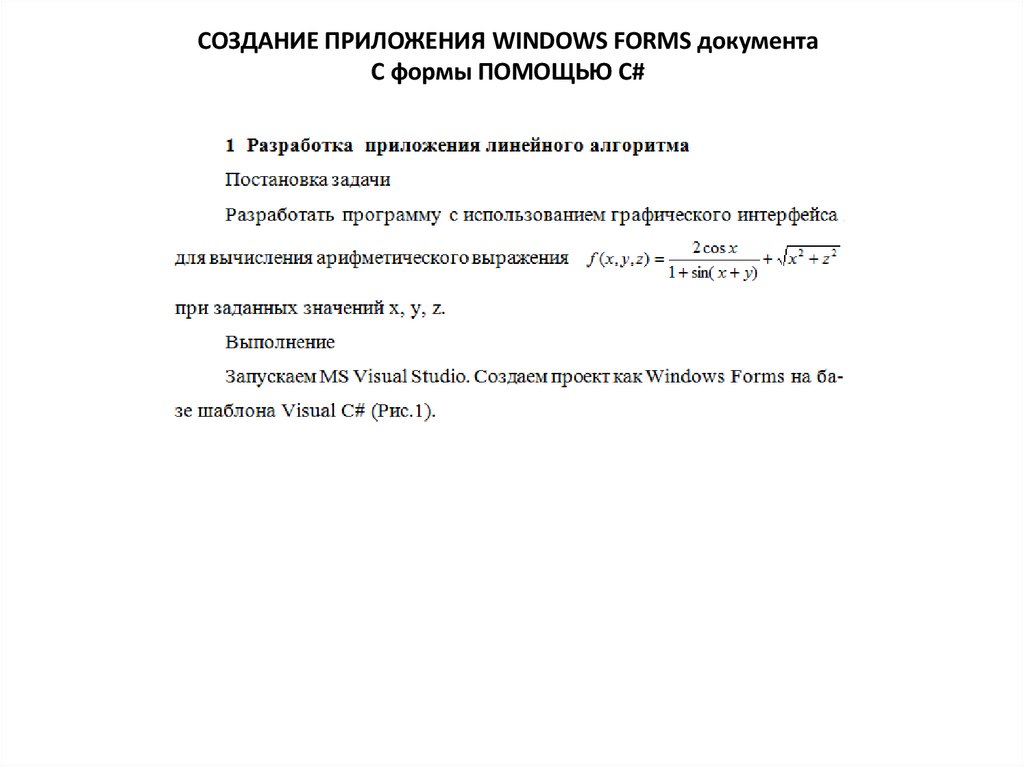 СОЗДАНИЕ ПРИЛОЖЕНИЯ WINDOWS FORMS документаС формы ПОМОЩЬЮ C#