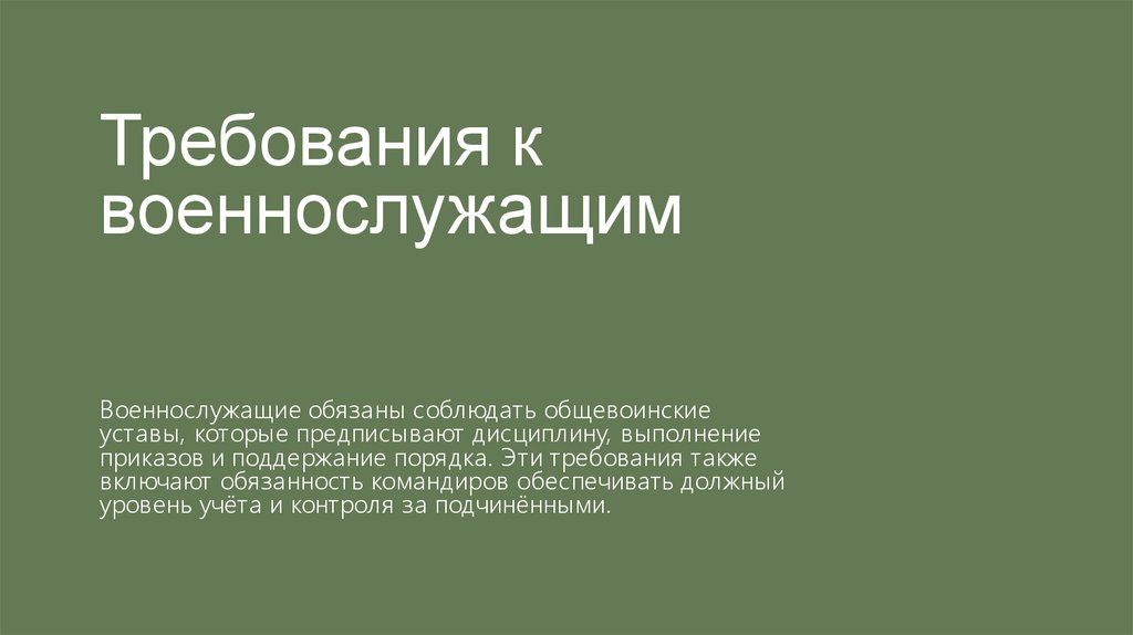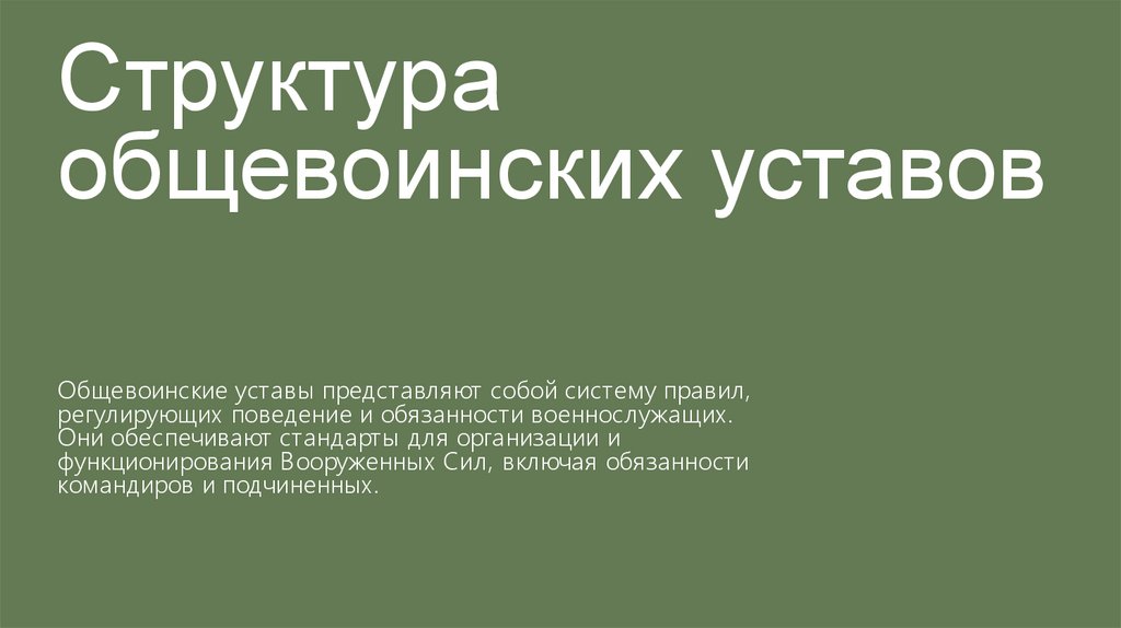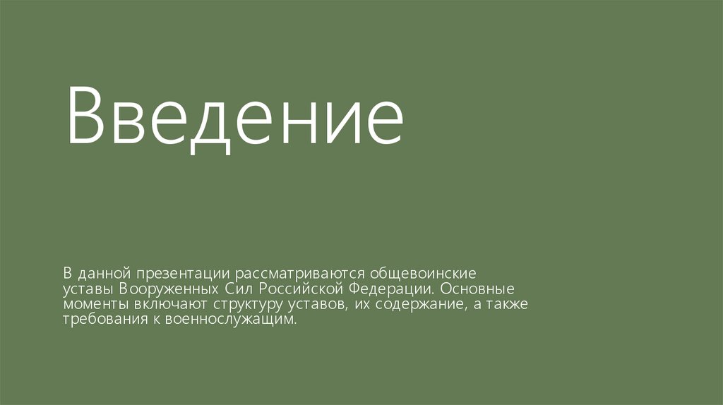 Общевоинские уставы. Основные требования и содержание общевоинских уставов Вооруженных Сил РФ