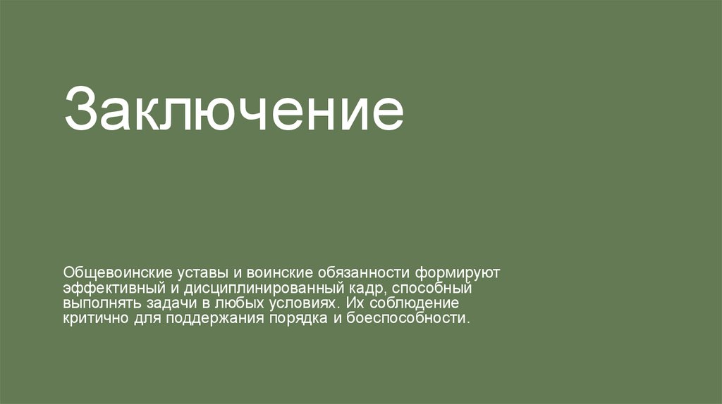 ЗаключениеОбщевоинские уставы и воинские обязанности формируют