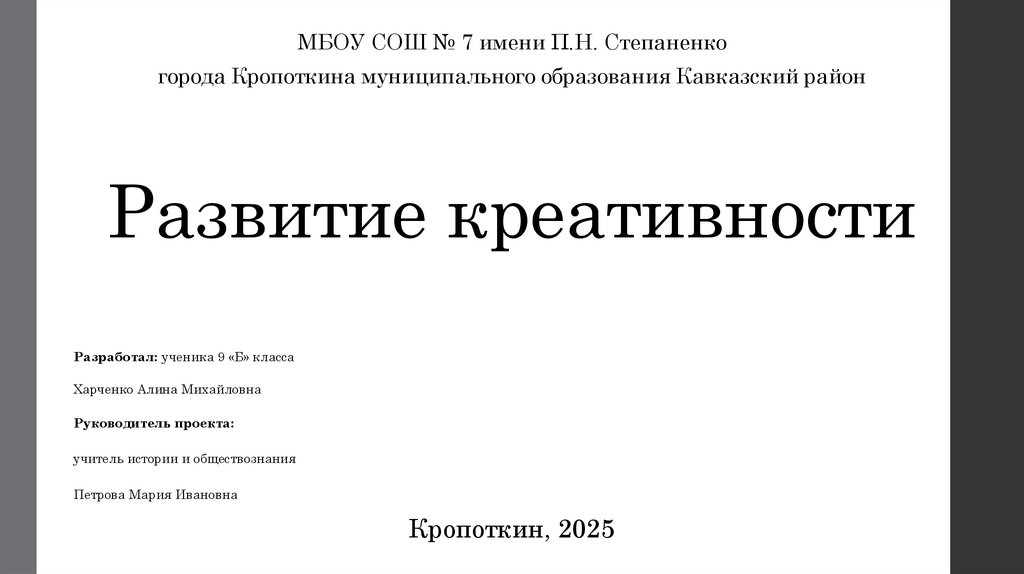 МБОУ СОШ № 7 имени П.Н. Степаненкогорода Кропоткина муниципального образования Кавказский район