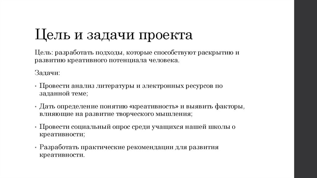Цель и задачи проектаЦель: разработать подходы, которые способствуют раскрытию и