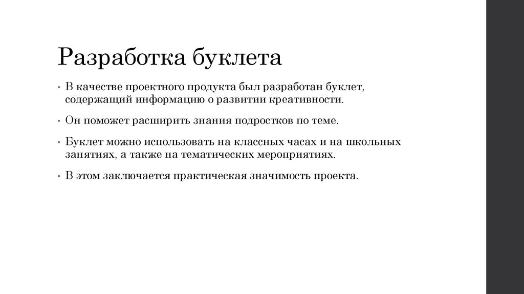 Разработка буклета• В качестве проектного продукта был разработан буклет,