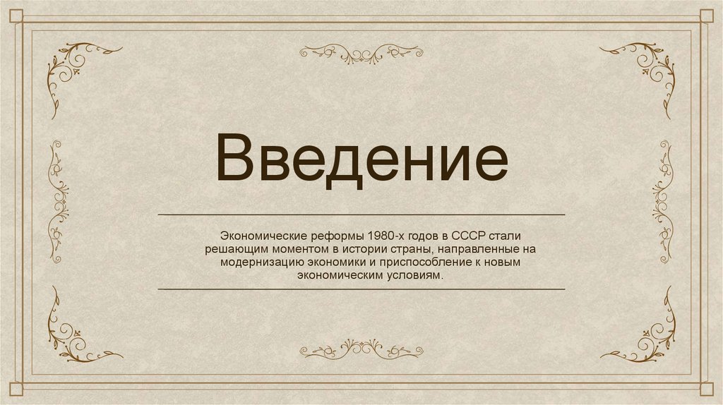 ВведениеЭкономические реформы 1980-х годов в СССР стали