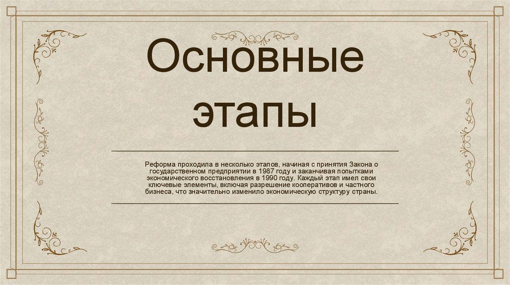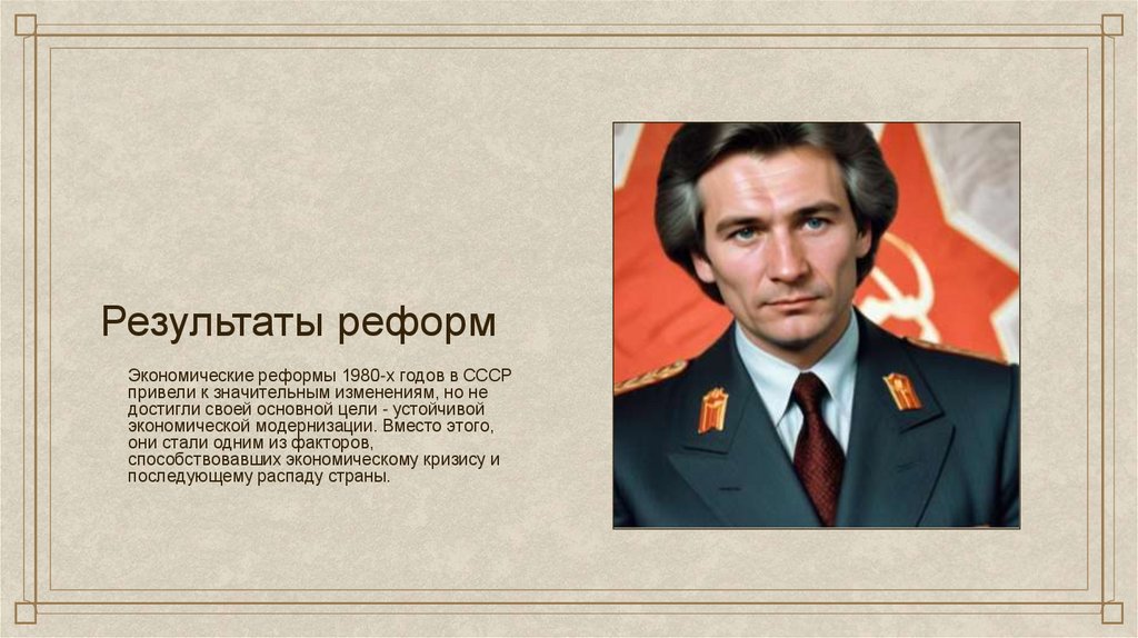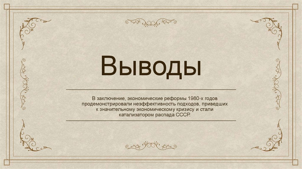 ВыводыВ заключение, экономические реформы 1980-х годов