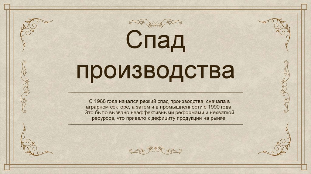 С 1988 года начался резкий спад производства, сначала в