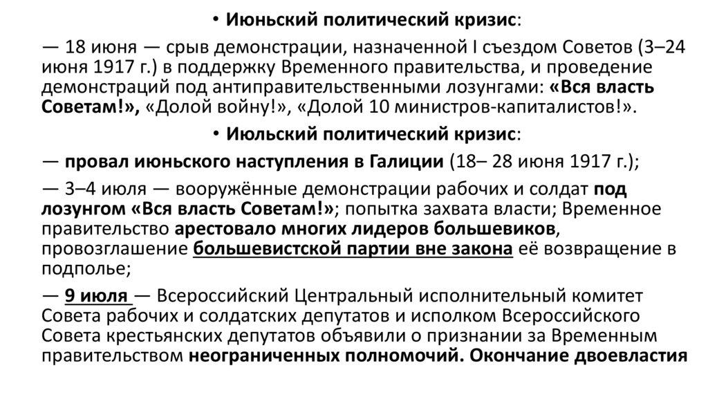 лозунгом «Вся власть Советам!»; попытка захвата власти; Временное